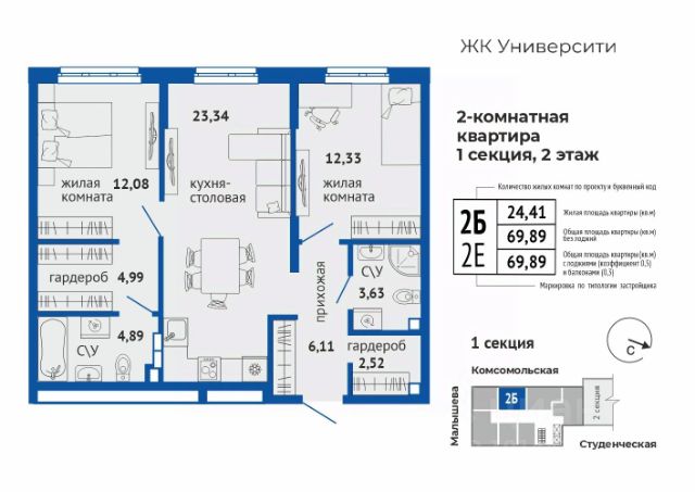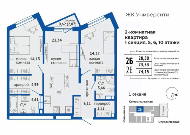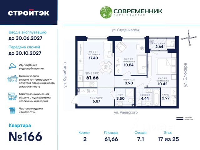 Дом 4 Ввод в эксплуатацию: вторая половина 2026 года (возможен досрочный ввод). Класс дома: комфорт. Отделка: чистовая (под ключ) включена в стоимость. Скидка при выборе предчистовой отделки. Размер скидки уточняйте в отделе продаж. Вид из окон: на дендропарк и во двор-парк. Б.26 дом на высоте современный жилой комплекс в районе Втузгородок (пересечении улиц Блюхера и Мира). До центра города 20 минут ходьбы. В шаговой доступности находятся: ВУЗы (Уральский федеральный университет, Юридическая академия) Дендрологический парк. школы (Гимназии 35, 47, 108, Лицей 130) детские сады ( 421, 423, 332, 352) остановки общественного транспорта (ул. Мира, ул. Блюхера, ТК Современник). торговые центры (Апельсин, Современник, Галерея 11, Blissco молл) Современная архитектура. Долговечные фасады из навесных панелей и штукатурки, увеличенные окна и французские балконы формируют уникальный узнаваемый образ. Ночная подсветка выделяет дом среди застройки района и подчеркивает выразительность его силуэта. Двор без машин. Игровые площадки для детей разных возрастов, места отдыха и занятий спортом для взрослых не соседствуют с парковкой. Динопарк. Игровые зоны созданы в стиле таинственного мира динозавров. Парк во дворе. Многоуровневое озеленение c прогулочными дорожками, беседками и качелями. Три уровня безопасности. Контроль доступа по карте жителя, эффективная система видеонаблюдения, консьерж-сервис. Дизайнерские холлы. Парадный холл с остеклением в пол, зонами ожидания, гостевым санузлом и санузлом для мытья лап животным, а также колес велосипедов и колясок. Сервисная компания от застройщика. Обслуживанием дома будет заниматься профессиональная команда СКМ Сервис Строительные и технические преимущества. Индивидуальный тепловой пункт: снижает затраты на отопление. Система очистки улучшит качество воды в доме. Пятикамерные окна задержат шумы и холод. Клапан вентиляции позволит проветрить комнату, не устраивая сквозняк. Горизонтальная разводка отопления: трубы спрятаны в полу. Счетчики с телеметрией. Отдельный счетчик на отопление у каждой квартиры. Отведение конденсата для кондиционеров. Высокий уровень шумоизоляции у стены квартир. Бесшумные, скоростные лифты. Дополнительно можно заказать кухню и ванную комнату, чтобы не тратить время и силы на ремонт при переезде. В улучшенной отделке санузла. предусмотрено все: матовая плитка, натяжной потолок, теплый пол, современная сантехника, зеркало с подсветкой, мебель и освещение. Это стильное и функциональное пространство. В готовой кухне мы предусмотрели все необходимое для эргономичного и функционального пространства. Кухонный гарнитур с надежной фурнитурой и встроенная техника, которая включает в себя холодильник, духовой шкаф, варочная панель, вытяжка, посудомоечная машина. Для микроволновки предусмотрена отдельная ниша. На выбор — три стильных решения, подходящих под разные вкусы и сценарии интерьера. От теплой классики до сдержанного минимализма: Кашемир, Серый шелк, Бланж. Кухня и санузел могут быть вкл