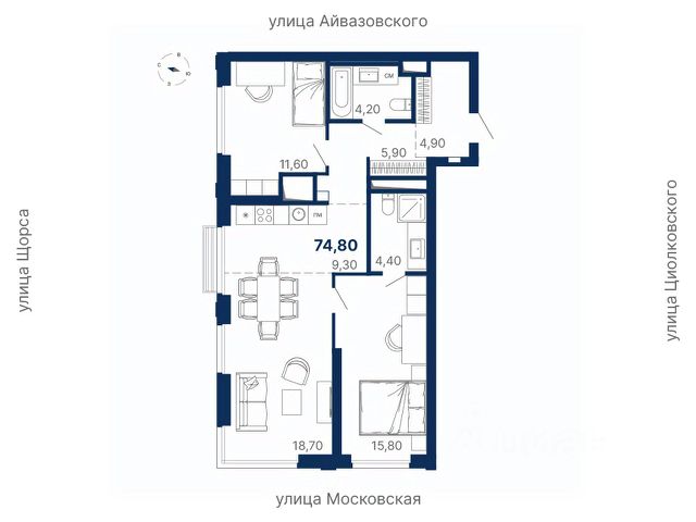 Дом "Токио" окна выходят на тихую улицу Айвазовского. Квартира в предчистовой отделке, что позволит Вам не переделывать чужой ремонт, а сделать все качественно под себя, можем предоставить классного дизайнера и строительные бригады.