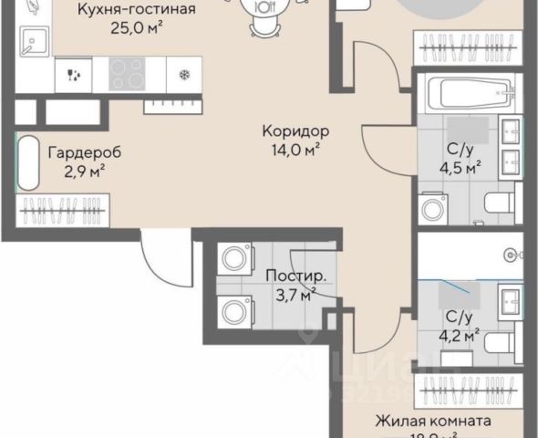 3 вариант: это полная отделка квартиры с санузлом в дизайнерской отделке.