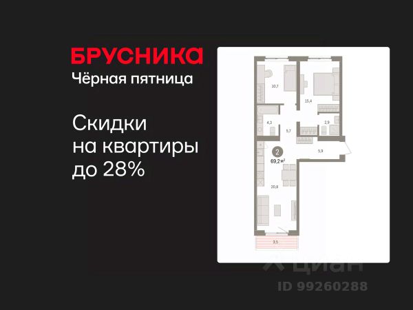 Торопитесь забронировать по акционной цене! Период акции ограничен! Стоимость квартиры указана со скидкой, ваша экономия составит 640,000 RUB. По всем вопросам обращайтесь в офис продаж, наши менеджеры вам все расскажут! Квартира с кухней-гостиной и двумя спальнями в Южных кварталах. Особенности планировки: предчистовая отделка, постирочная, балкон. квартиры в нашей базе: ЮКВ08-Ж3.2.5. Жилой район "Южные кварталы" расположен в границах улиц Московская, Шаумяна и Фурманова, недалеко от автовокзала. До центра города — 10 минут на автомобиле. До станции метро "Чкаловская" — 15 минут пешком. Рядом находится парк, школа олимпийского резерва, несколько гимназий, лицей, детские сады и городская больница. "Южные кварталы" — проект комплексного редевелопмента территории, разработанный архитекторами Брусники совместно с голландскими бюро. Он разделен на несколько частей, каждая из которых имеет свой характер. Вдоль оживленной Московской появятся более высокие и крупные дома. Профиль спокойной и очень зелёной Шаумяна сформируют кварталы среднеи этажности. В глубине района мы расположим урбан-виллы, чуть дальше — башни-доминанты. Последние будут играть роль визуальных акцентов и впоследствии станут символами этого места. Ближе к Фурманова мы организуем образовательный кластер. Его составят два детских сада на 300 и 325 мест и школа, рассчитанная на 1500 учеников. Школа будет иметь спортивную зону, которая станет доступна и жителям района. Свяжет территорию сеть общественных пространств. Её центральным звеном станет зелёный променад, проходящий сквозь весь район и соединяющий его с парком 50-летия ВЛКСМ. #2mvcgO