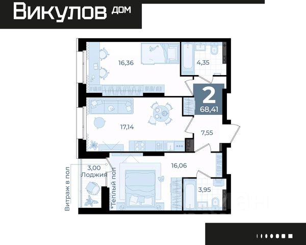 Викулов — это камерный дом с подземным паркингом и закрытой дворовой территорией. Прямо под окнами дома расположились школа и садик. Викулов скрылся от суеты и шума в зеленых дворах Верх-Исетского района. Расположение и хорошая транспортная доступность позволят вам доехать до центра за 10 минут, а на личном транспорте еще быстрее. Современный двор станет местом отдыха не только детей, но и взрослых. Спокойствие жителей обеспечит приватная территория, видеонаблюдение и консьерж-сервис. В парадном холле запроектирована лаундж зона с детским уголком, стойка ресепшен, гостевые санузлы. Кроме того, предусмотрен технический холл и комната для ухода за детским транспортом и мытья лап животных. Большинство планировок имеют две и три спальни, просторные кухни-гостиные и два санузла. Места хватит даже большим семьям. Мы готовы передать квартиру в чистовой отделке, она подойдет тем, кто не хочет тратить время на ремонт. Дополнительно в доме Викулов можно заказать готовую кухню, чтобы не тратить время и силы на ремонт при переезде. Мы предусмотрели все необходимое для эргономичного и функционального пространства. Кухонный гарнитур с надежной фурнитурой и встроенная техника, которая включает в себя холодильник, духовой шкаф, варочная панель, вытяжка, посудомоечная машина. Для микроволновки предусмотрена отдельная ниша. На выбор — три стильных решения, подходящих под разные вкусы и сценарии интерьера. От теплой классики до сдержанного минимализма: Кашемир, Серый шелк, Бланж. Приглашаем вас в офис продаж, где познакомим с проектом ближе. В ваших планах. СКМ.