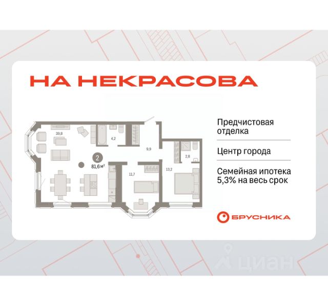 Успейте забронировать по этой цене! Предложение ограничено! Стоимость квартиры указана со скидкой, ваша экономия составит 1,040,000 RUB. По всем вопросам обращайтесь в офис продаж, мы вам все подробно расскажем! Квартира с кухней-гостиной и двумя спальнями в квартале "На Некрасова". Особенности планировки: мастер-спальня, предчистовая отделка. квартиры в нашей базе: НКР02-Ж1.10.7. Квартал "На Некрасова" состоит из четырёх домов переменной высотности от 7 до 25 этажей с тихими дворами и подземным паркингом. Особенность квартала — общественные пространства и благоустройство нового уровня: городская площадь с фонтаном, центральный пешеходный бульвар, ландшафтный парк, камерные сады и зелёные кровли домов. Из окон квартир открывается вид на Исеть. В квартале спроектированы помещения под магазины, кафе, аптеки и соседский центр. Проект расположен в центре Екатеринбурга в границах улиц Печерская — Некрасова рядом с управлением железной дороги и крупной транспортной магистралью — улицей Челюскинцев. В пешей доступности — школа 208, сквер, санаторий, фитнес-центр с бассейном. В 10 минутах ходьбы находится станция метро "Динамо", Олимпийская набережная, Дворец игровых видов спорта, спортивный комплекс "Динамо" и киноконцертный театр "Космос". Особенность проекта — цепочка связанных общественных пространств. Новая площадь за зданием управления железной дороги переходит в бульвар и сквер. В центре площади — фонтан. На бульваре расположена детская площадка, спортивная зона и беседки-перголы для спокойного отдыха. Вход во двор организован через колоннаду. Планировочно он разделён на две части. Парадный партер с большим количеством стриженых растений, фонтанами, цветущими кустарниками и более "домашняя", уютная зона, где высажены деревья и низкорослые хвойные растения, многолетники. В центре двора — две детские площадки. #z6m3O8