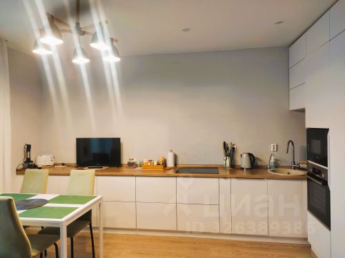 Квартира оборудована мебелью и техникой, все в едином современном стиле. В стоимость входит кухонная мебель с техникой, шкафы.