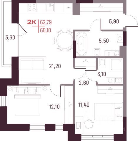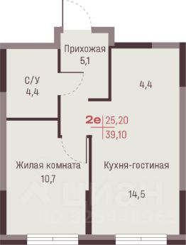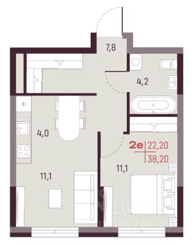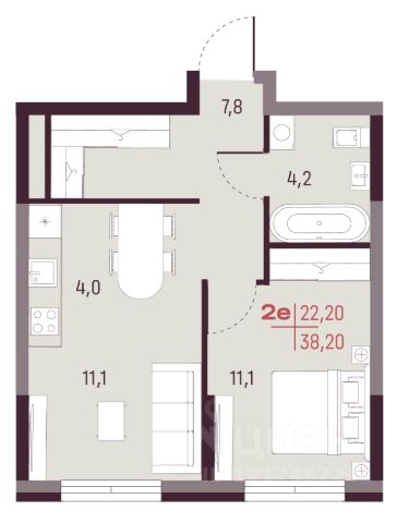 В продаже 2-комнатная квартира (евро-3) площадью 55,05