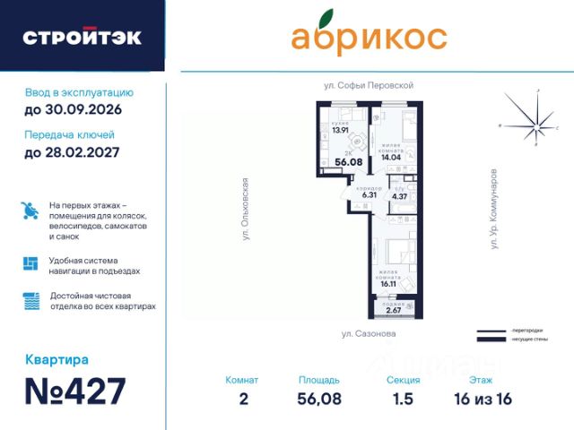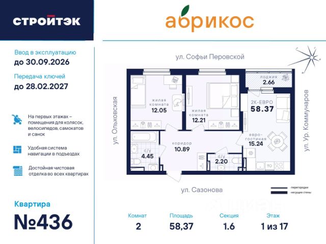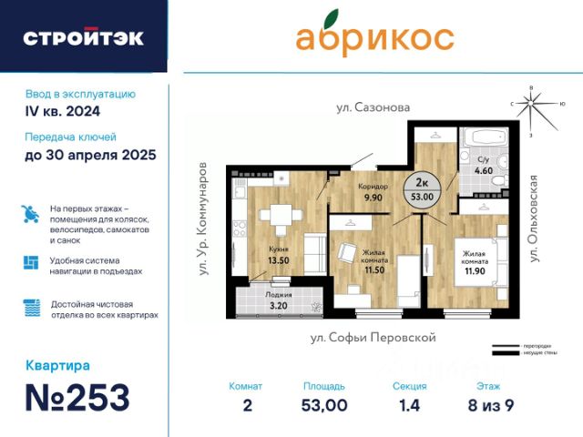 ЖК "Абрикос", расположен в районе Новая Сортировка по адресу ул. Софьи Перовской, д. 106а. Познакомьтесь с "Абрикосом" поближе. Мы создали его таким, чтобы вы были довольны всем, а ваша жизнь в нём была как сам этот фрукт: свежей, сочной, яркой и солнечной. Район Тихий микрорайон Новая сортировка на Северо-западе Екатеринбурга. 20 минут пешком до парка "Таганская слобода" 15 минут на машине до кольцевой дороги, а до центра — полчаса даже по пробкам 10 минут на машине до ТЦ "Карнавал" 7 школ и 11 детсадов поблизости 6 продуктовых магазинов рядом Двор Во дворе хорошо должно быть всем: детям — площадки по возрасту, взрослым — прогулочные дорожки. Но это не всё. Вместительная парковка вокруг ЖК Концепция "Двор без машин", когда можно заехать только для разгрузки и погрузки Закрытая территория с пропускной системой Круглосуточное видеонаблюдение и освещение территории в ночное время Стритбольная площадка Подъезды Не подъезд, а парадная. Так говорят в Петербурге, но и в "Абрикосе" это слово приходит в голову. Просторные холлы с витражами и достойной отделкой. Доступ в подъезды на уровне земли — без барьеров Домофоны — в тёплых остеклённых тамбурах В каждом подъезде — грузопассажирский лифт Помещения для колясок и самокатов на 1 этаже Удобная навигация с номерами этажей и квартир Планировки Наш подход к проектированию называется "Разумные метры". Это значит не только исходить из площади, но и учитывать число жильцов и их потребности. Объединённые кухни-гостиные для простора и общения 3D-модели с вариантами обстановки Отказ от бесполезных "мёртвых" зон Отделка В ЖК "Абрикос" мы позаботились о чистовой отделке, чтобы ваш переезд прошёл быстро и не вызвал лишних хлопот. На полу в комнатах, прихожих и кухнях — прочный водостойкий ламинат, в санузлах — керамическая плитка, потолки — натяжные Межкомнатные двери и усиленная сейф-дверь на входе в квартиру В санузлах установлены раковины и унитазы, а во всей квартире — розетки и выключатели Радиаторы с терморегуляторами и горизонтальной разводкой, двухкамерные стеклопакеты с приточными клапанами вентиляции