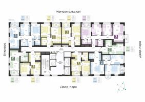 Дом 5 Класс дома: комфорт. Отделка: чистовая (под ключ) включена в стоимость. Скидка при выборе предчистовой отделки. Размер скидки уточняйте в отделе продаж. Вид из окон: на дендропарк и во двор-парк. Б.26 дом на высоте современный жилой комплекс в районе Втузгородок (пересечении улиц Блюхера и Мира). До центра города 20 минут ходьбы. В шаговой доступности находятся: ВУЗы (Уральский федеральный университет, Юридическая академия) Дендрологический парк. школы (Гимназии 35, 47, 108, Лицей 130) детские сады ( 421, 423, 332, 352) остановки общественного транспорта (ул. Мира, ул. Блюхера, ТК Современник). торговые центры (Апельсин, Современник, Галерея 11, Blissco молл) Современная архитектура. Долговечные фасады из навесных панелей и штукатурки, увеличенные окна и французские балконы формируют уникальный узнаваемый образ. Ночная подсветка выделяет дом среди застройки района и подчеркивает выразительность его силуэта. Двор без машин. Игровые площадки для детей разных возрастов, места отдыха и занятий спортом для взрослых не соседствуют с парковкой. Динопарк. Игровые зоны созданы в стиле таинственного мира динозавров. Парк во дворе. Многоуровневое озеленение c прогулочными дорожками, беседками и качелями. 3 уровня безопасности. Контроль доступа по карте жителя, эффективная система видеонаблюдения, консьерж-сервис. Дизайнерские холлы. Парадный холл с остеклением в пол, зонами ожидания, гостевым санузлом и санузлом для мытья лап животным, а также колес велосипедов и колясок. Сервисная компания от застройщика. Обслуживанием дома будет заниматься профессиональная команда. Строительные и технические преимущества. Индивидуальный тепловой пункт: снижает затраты на отопление. Система очистки улучшит качество воды в доме. Пятикамерные окна задержат шумы и холод. Клапан вентиляции позволит проветрить комнату, не устраивая сквозняк. Горизонтальная разводка отопления: трубы спрятаны в полу. Счетчики с телеметрией. Отдельный счетчик на отопление у каждой квартиры. Отведение конденсата для кондиционеров. Высокий уровень шумоизоляции у стены квартир. Бесшумные, скоростные лифты.