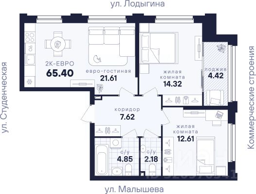 • ✓ В базе Циан 67 2-комнатных квартир в ЖК Динамика в Екатеринбурге