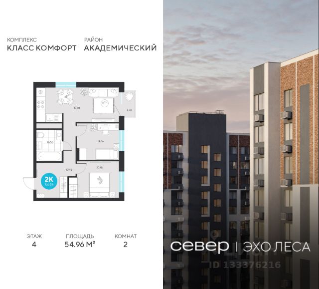 Продаётся квартира площадью 50.33 м2 в жилом комплексе "Эхо леса". Квартира находится на 3 этаже, жилая площадь квартиры 18.48 м2, площадь просторной кухни — 17.66 м2. Среди особенностей планировки — изолированные комнаты с окнами на одну сторону, 1 совмещённый санузел. Срок сдачи — I кв. 2028 Жилой комплекс "Эхо леса" — это: - дом в эко-стиле - двор с выходом в лесопарк - лаконичная архитектура - развитая инфраструктура вокруг квартала Инфраструктура В окружении проекта — вся необходимая инфраструктура: детские сады, школы, спортивный комплекс, продуктовые магазины, аптеки, кофейни, рестораны и салоны красоты. Благоустройство Концепция двора-парка продолжает тему леса. Ландшафт с продуманным всесезонным озеленением дополняют акценты: сухой ручей из камней, столы и навесы из натурального дерева, эко-тропы, фонтан и променад. Для взрослых предусмотрены пешеходные и велодорожки, для детей — игровые площадки для разных возрастов. Архитектура Переменная высота секций создаёт выразительный архитектурный облик. На фасадах — игра контрастных, при этом природных оттенков. Динамики зданию придают текстуры материалов: фактурной штукатурки и клинкерного кирпича. Лобби Интерьер в холле продолжает концепцию квартала и выполнен в эко стиле. В отделке используются элементы природных материалов с изображениями листвы и деревьев. Паркинг Тёплый подземный паркинг организован как единое пространство с собственным дизайном. Кладовые Индивидуальные помещения на техническом этаже — способ сохранить пространство в квартире. Попасть в кладовые можно на лифте. Планировки В продуманных планировках выделены тихие и шумные зоны. Приватные спальни и кабинеты спрятаны от маршрутов домашнего движения, а кухни-гостиные с барной стойкой вместо стены — всегда готовы к семейным праздникам. Из окон квартир открываются живописные виды на лес.