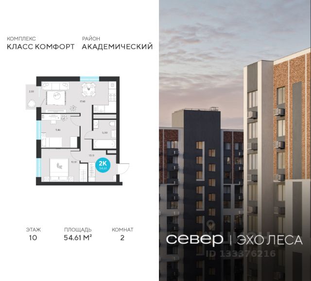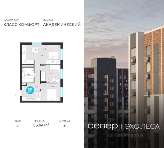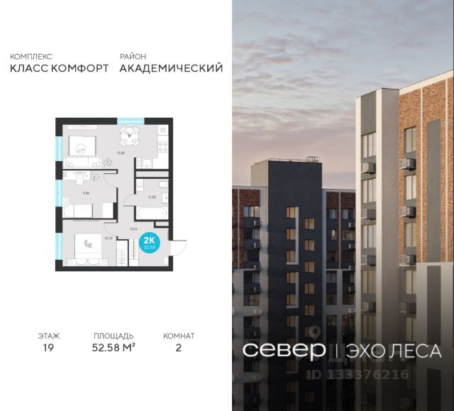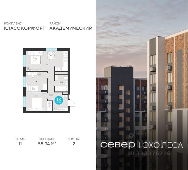 Продаётся квартира площадью 50.33 м2 в жилом комплексе "Эхо леса". Квартира находится на 15 этаже, жилая площадь квартиры 18.48 м2, площадь просторной кухни — 17.66 м2. Среди особенностей планировки — изолированные комнаты с окнами на одну сторону, 1 совмещённый санузел. Срок сдачи — I кв. 2028 Жилой комплекс "Эхо леса" — это: - дом в эко-стиле - двор с выходом в лесопарк - лаконичная архитектура - развитая инфраструктура вокруг квартала Инфраструктура В окружении проекта — вся необходимая инфраструктура: детские сады, школы, спортивный комплекс, продуктовые магазины, аптеки, кофейни, рестораны и салоны красоты. Благоустройство Концепция двора-парка продолжает тему леса. Ландшафт с продуманным всесезонным озеленением дополняют акценты: сухой ручей из камней, столы и навесы из натурального дерева, эко-тропы, фонтан и променад. Для взрослых предусмотрены пешеходные и велодорожки, для детей — игровые площадки для разных возрастов. Архитектура Переменная высота секций создаёт выразительный архитектурный облик. На фасадах — игра контрастных, при этом природных оттенков. Динамики зданию придают текстуры материалов: фактурной штукатурки и клинкерного кирпича. Лобби Интерьер в холле продолжает концепцию квартала и выполнен в эко стиле. В отделке используются элементы природных материалов с изображениями листвы и деревьев. Паркинг Тёплый подземный паркинг организован как единое пространство с собственным дизайном. Кладовые Индивидуальные помещения на техническом этаже — способ сохранить пространство в квартире. Попасть в кладовые можно на лифте. Планировки В продуманных планировках выделены тихие и шумные зоны. Приватные спальни и кабинеты спрятаны от маршрутов домашнего движения, а кухни-гостиные с барной стойкой вместо стены — всегда готовы к семейным праздникам. Из окон квартир открываются живописные виды на лес.