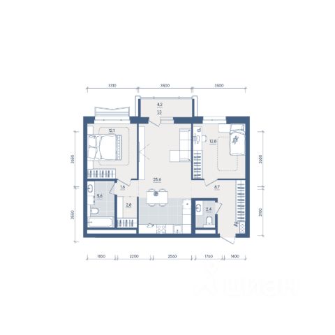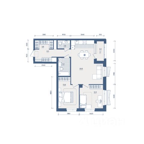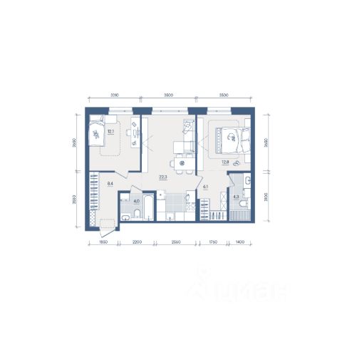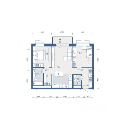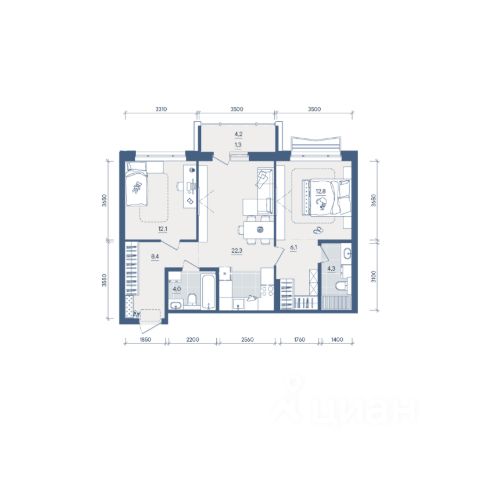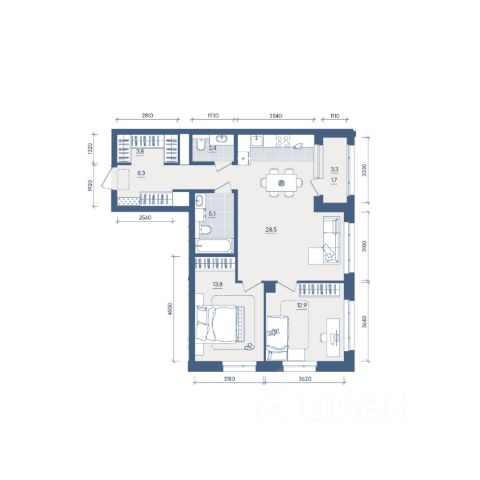 Продаётся 2-комнатная квартира в строящемся доме (Секция 2), срок сдачи: II-кв. 2028, общей площадью 54.6 кв.м., на 6 этаже. Новый жилой комплекс "Форма" от застройщика "Форум-Групп" расположен по адресу: г. Екатеринбург, улица Сони Морозовой.