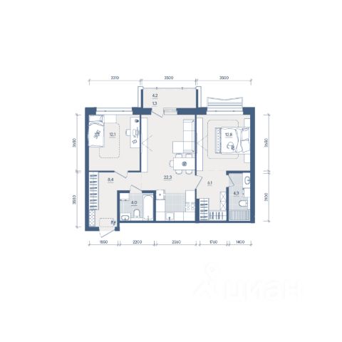 Продаётся 2-комнатная квартира в строящемся доме (Секция 2), срок сдачи: II-кв. 2028, общей площадью 54.6 кв.м., на 6 этаже. Новый жилой комплекс "Форма" от застройщика "Форум-Групп" расположен по адресу: г. Екатеринбург, улица Сони Морозовой.