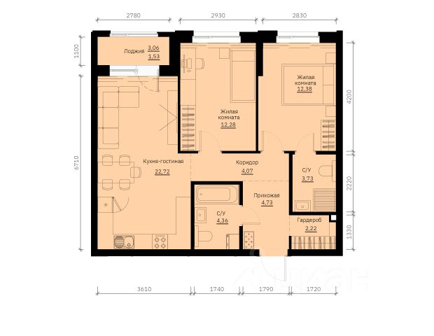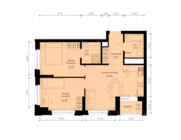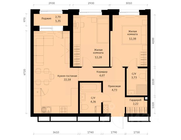 ✓ Цена за м²: 163,3 тыс. ₽/м²
