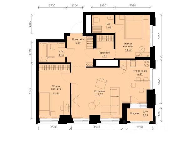 Продаётся 2-комнатная квартира в строящемся доме (Дом 1), срок сдачи: IV-кв. 2027, общей площадью 57.46 кв.м., на 22 этаже. Новый жилой комплекс "GRAFIT" от застройщика "Форум-групп" расположен по адресу: г. Екатеринбург, улица Победы.