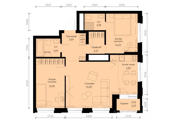 Продаётся 2-комнатная квартира в строящемся доме (Дом 1), срок сдачи: IV-кв. 2027, общей площадью 70.2 кв.м., на 20 этаже. Новый жилой комплекс "GRAFIT" от застройщика "Форум-групп" расположен по адресу: г. Екатеринбург, улица Победы.