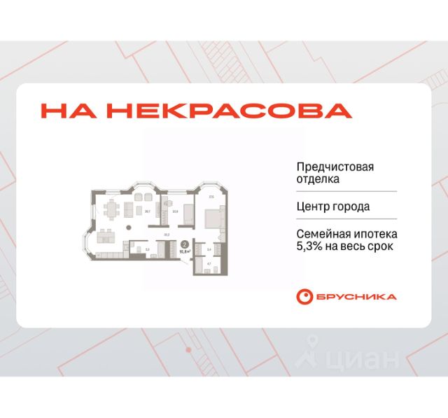 Успейте забронировать по этой цене! Предложение ограничено! Стоимость квартиры указана со скидкой, ваша экономия составит 1,040,000 RUB. Звоните, мы вам все подробно расскажем! Квартира с кухней-гостиной и двумя спальнями в квартале "На Некрасова". Особенности планировки: вид во двор, лоджия, предчистовая отделка, мастер-спальня, постирочная. квартиры в нашей базе: НКР02-Ж1.10.7. Квартал "На Некрасова" состоит из четырёх домов переменной высотности от 7 до 25 этажей с тихими дворами и подземным паркингом. Особенность квартала — общественные пространства и благоустройство нового уровня: городская площадь с фонтаном, центральный пешеходный бульвар, ландшафтный парк, камерные сады и зелёные кровли домов. Из окон квартир открывается вид на Исеть. В квартале спроектированы помещения под магазины, кафе, аптеки и соседский центр. Проект расположен в центре Екатеринбурга в границах улиц Печерская — Некрасова рядом с управлением железной дороги и крупной транспортной магистралью — улицей Челюскинцев. В пешей доступности — школа 208, сквер, санаторий, фитнес-центр с бассейном. В 10 минутах ходьбы находится станция метро "Динамо", Олимпийская набережная, Дворец игровых видов спорта, спортивный комплекс "Динамо" и киноконцертный театр "Космос". Особенность проекта — цепочка связанных общественных пространств. Новая площадь за зданием управления железной дороги переходит в бульвар и сквер. В центре площади — фонтан. На бульваре расположена детская площадка, спортивная зона и беседки-перголы для спокойного отдыха. Вход во двор организован через колоннаду. Планировочно он разделён на две части. Парадный партер с большим количеством стриженых растений, фонтанами, цветущими кустарниками и более "домашняя", уютная зона, где высажены деревья и низкорослые хвойные растения, многолетники. В центре двора — две детские площадки. #ZMm3O8