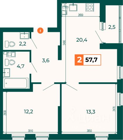 - раздельный c/узел 3,4 + 2 кв.м. (можно объединить);