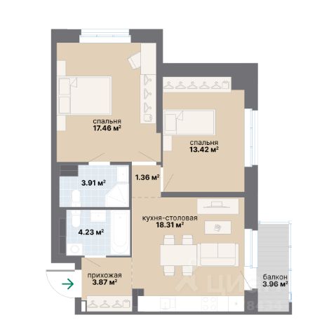 Квартира 73 в подъезде 1. Здесь соседи знают друг друга по имени, а дети заводят друзей во дворе, а не в соцсетях. Вторая очередь квартала "Лайв" — это современные технологии комфорта и особенное внимание к атмосфере добрососедства. В первой очереди располагаются большой соседский центр для всевозможных активностей и спортзал для резидентов. Под домом — вместительный подземный паркинг, а в закрытом для машин дворе хватит места для игр, прогулок, отдыха и общения.