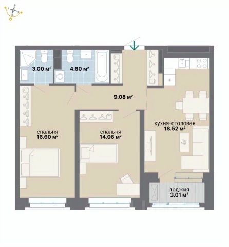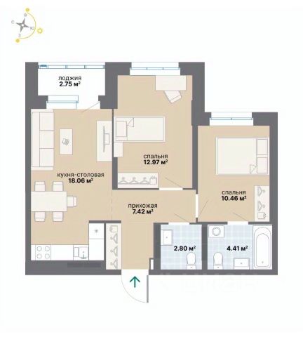 Квартира 57 в подъезде 1. Здесь соседи знают друг друга по имени, а дети заводят друзей во дворе, а не в соцсетях. Вторая очередь квартала "Лайв" — это современные технологии комфорта и особенное внимание к атмосфере добрососедства. В первой очереди располагаются большой соседский центр для всевозможных активностей и спортзал для резидентов. Под домом — вместительный подземный паркинг, а в закрытом для машин дворе хватит места для игр, прогулок, отдыха и общения.