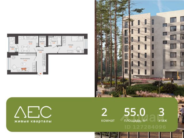 В экологически чистом районе Широкой Речки, всего в 10 км от центра Екатеринбурга, продается 2-комнатная квартира площадью 60.00 кв. м. с предчистовой отделкой. Квартира находится в 4/1 корпусе жилого комплекса комфорт-класса "ЛЕС" (Застройщик - компания "Железно"). Квартал "ЛЕС" бережно расположен прямо внутри соснового бора. Все преимущества отдыха на природе ежедневно - достаточно выглянуть в окно. Наслаждайтесь уютом загородного дома с комфортом городской среды. Удобная локация в окружении природы: Половинное озеро и чистый сосновый лес в 5 минутах ходьбы; На расстоянии 1 км - автобусная остановка "Широкая речка"; В ближайшее время будет запущено строительство новых автомобильных дорог и организация дополнительных маршрутов общественного транспорта. Живой квартал у леса Лес - главный герой квартала. Дома находятся в окружении соснового бора, а их этажность - до 8 этажей - не превышает крон сосен. В новом жилом комплексе большое внимание уделено заботе о сохранении деревьев и реализации специальных программ по высадке новых, чтобы жители наслаждались прекрасной растительностью каждый день. Комфорт и Умный дом Концепция заботы о лесе и любви к природе продолжается в интерьерах лобби. Здесь преобладают мягкие естественные оттенки, а мебель выполнена из экологичных материалов, передающих естественную текстуру дерева. В каждой квартире установлен кран с питьевой водой, тепло жителям обеспечивает собственная котельная. Управлять своим домом помогает собственное мобильное приложение от застройщика - "Мажордом". Чаты с жильцами, заявки в СК Азбука, бесключевой доступ, IP домофония, оплата ЖКХ. Управляйте домом из любой точки мира в один клик! Благоустройство На территории комплекса появится открытый парк, площадью в 6,3 Га, прогулки по которому станут для жителей любимым занятием. Парковое пространство предусматривает различные сценарии для активного и спокойного отдыха: пешеходные экотропы, протяженные веломаршруты, специальные игровые и спортивные площадки, релакс-зоны и места для творчества. Все элементы благоустройства выполнены из экологичных высококачественных материалов. Отдых на свежем воздухе в приятном уединении или в кругу веселой компании друзей доступен жителям живых кварталов в любое время, когда они этого пожелают.