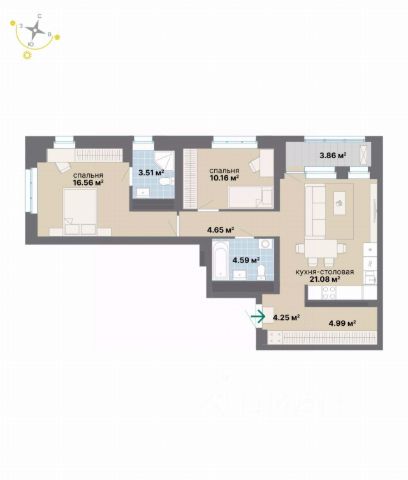 • ✅ Минимальная площадь: 55,1 м²