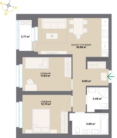 Продаётся 2-комнатная квартира в строящемся доме (Дом 1 этап 2), срок сдачи: III-кв. 2028, общей площадью 63.54 кв.м., на 8 этаже. Новый жилой комплекс "Наука и искусство" от застройщика "Атомстройкомплекс" расположен по адресу: г. Екатеринбург, Комвузовская улица.