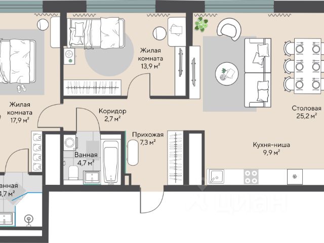 Жилои квартал "Никольскии" — проект, созданный для комфортной жизни и счастливых событий. Это жизнь бизнес-класса в центральном районе Екатеринбурга. ЖК "Никольский" расположен в центре города на пересечении улиц Фурманова — Белинского — Большакова и набережной реки Исеть. В 5 минутах пешей прогулки расположен центральный парк культуры и отдыха им. В.В. Маяковского Общественные пространства дома выполнены по авторскому дизайн-проекту. Просторные холлы, наполненные светом, сочетание крупноформатного керамогранита, эксклюзивных элементов интерьера и декоративной подсветки создают ощущение роскоши, подобно лобби пятизвездочного отеля. Для комфортной и счастливой жизни резидентов реализованы премиальные инженерные решения и функциональная внутренняя инфраструктура: теплый подземный паркинг, комнаты для хранения колясок и велосипедов с отдельным входом, душ для домашних питомцев и локеры для хранения сезонных и габаритных вещей. На первых этажах дома будут расположены фитнес-клуб с бассейном и детским фитнесом, медицинский центр "УГМК-Здоровье" и аптека, салон красоты, супермаркеты и магазины, пункты выдачи маркетплейсов, пекарня и пиццерия, винотеки. В шаговой доступности: детский сад 463 и школа 17 с углублённым изучением отдельных предметов. Всегда можно прогуляться на свежем воздухе — по соседству находятся центральный парк культуры и отдыха им. В.В. Маяковского и парк им. Павлика Морозова. На шоппинг и за развлечениями Вас ждут в торгово-развлекательном центре "Гринвич". Здесь же расположены цирк, дендропарк, ледовая арена "УГМК-Арена", спортивный комплекс "Юность", четыре высших учебных заведения, гостиницы, офисы ведущих компаний, а также здания районной, городской и областной администраций. Не является публичной офертой. Возможность провести бесплатную перепланировку от застройщика зависит от графика производства строительных работ. Необходимо уточнять возможность в центре продаж. Стоимость регистрации права собственности составляет: для физических лиц — 6 500 рублей, для юридических лиц — 56 000 рублей.