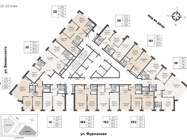 Жилои квартал "Никольскии" — проект, созданный для комфортной жизни и счастливых событий. Это жизнь бизнес-класса в центральном районе Екатеринбурга. ЖК "Никольский" расположен в центре города на пересечении улиц Фурманова — Белинского — Большакова и набережной реки Исеть. В 5 минутах пешей прогулки расположен центральный парк культуры и отдыха им. В.В. Маяковского Общественные пространства дома выполнены по авторскому дизайн-проекту. Просторные холлы, наполненные светом, сочетание крупноформатного керамогранита, эксклюзивных элементов интерьера и декоративной подсветки создают ощущение роскоши, подобно лобби пятизвездочного отеля. Для комфортной и счастливой жизни резидентов реализованы премиальные инженерные решения и функциональная внутренняя инфраструктура: теплый подземный паркинг, комнаты для хранения колясок и велосипедов с отдельным входом, душ для домашних питомцев и локеры для хранения сезонных и габаритных вещей. На первых этажах дома будут расположены фитнес-клуб с бассейном и детским фитнесом, медицинский центр "УГМК-Здоровье" и аптека, салон красоты, супермаркеты и магазины, пункты выдачи маркетплейсов, пекарня и пиццерия, винотеки. В шаговой доступности: детский сад 463 и школа 17 с углублённым изучением отдельных предметов. Всегда можно прогуляться на свежем воздухе — по соседству находятся центральный парк культуры и отдыха им. В.В. Маяковского и парк им. Павлика Морозова. На шоппинг и за развлечениями Вас ждут в торгово-развлекательном центре "Гринвич". Здесь же расположены цирк, дендропарк, ледовая арена "УГМК-Арена", спортивный комплекс "Юность", четыре высших учебных заведения, гостиницы, офисы ведущих компаний, а также здания районной, городской и областной администраций. Не является публичной офертой. Возможность провести бесплатную перепланировку от застройщика зависит от графика производства строительных работ. Необходимо уточнять возможность в центре продаж.