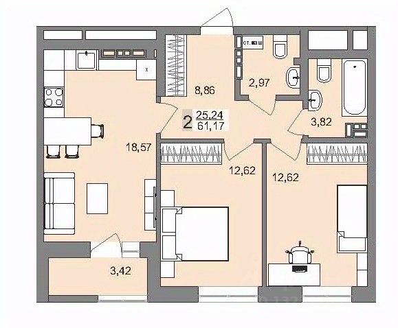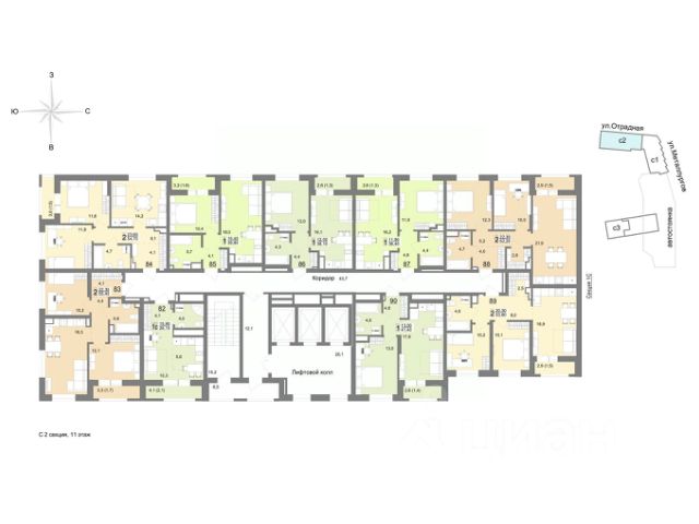 Продаётся 2-комнатная квартира в строящемся доме (Секция С1), срок сдачи: III-кв. 2026, общей площадью 61.4 кв.м., на 3 этаже. Многоэтажные жилые дома по ул. Металлургов от ГК "Астра". 1 очередь строительства