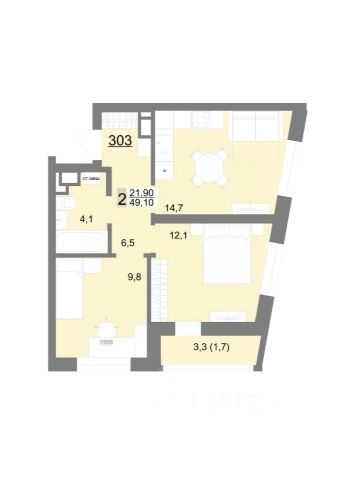 Продаётся 2-комнатная квартира в строящемся доме (Секция С1), срок сдачи: III-кв. 2026, общей площадью 49.1 кв.м., на 7 этаже. Многоэтажные жилые дома по ул. Металлургов от ГК "Астра". 1 очередь строительства