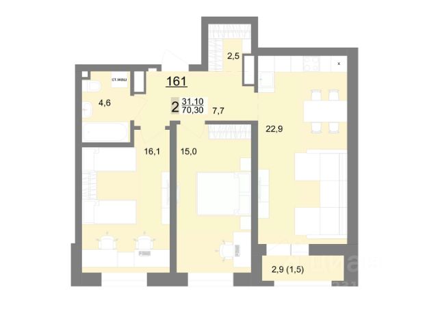 | 🔷 Средняя цена за м2: | 155 тыс. руб./м² |
