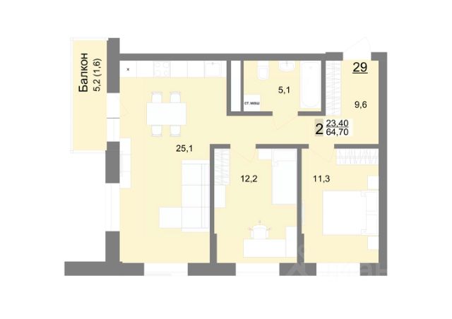 Продаётся 2-комнатная квартира в строящемся доме (Секция С3), срок сдачи: III-кв. 2026, общей площадью 64.9 кв.м., на 23 этаже. Многоэтажные жилые дома по ул. Металлургов от ГК "Астра". 1 очередь строительства