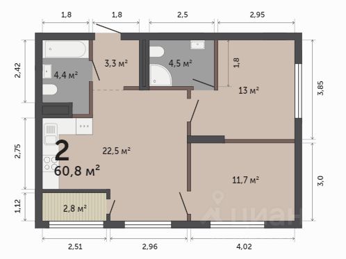 Продаётся 2-комнатная квартира в сданном доме (Краснолесья, 10/6 (Дом 4, секция 2-4)), срок сдачи: III-кв. 2024, общей площадью 72.9 кв.м., на 1 этаже. Жилой квартал "Ньютон Парк" спроектирован уральским бюро R1 и британской мастерской Twelve Architects в духе Нью-Йорка 1930-х годов. Архитектурный ансамбль в стиле арт-деко уютно расположился в лесопарковой зоне района Краснолесье. Двор ЖК "Ньютон Парк" разделен на просторные тематические площадки для детей и зеленые благоустроенные зоны. На главной площади квартала разместился "сухой" фонтан, который становится катком в зимние месяцы. В закрытый двор нет доступа машинам - семиуровневый паркинг разместит более 650 автомобилей жителей и гостей квартала. На территории "Ньютон Парка" расположен муниципальный детский сад на 120 мест, магазины, аптека, рестораны и кафе, в шаговой доступности новая школа, остановки общественного транспорта. Современные инженерно-технические решения "Ньютон Парка" направлены на обеспечение комфорта и безопасности: дома оборудованы системой видеонаблюдения, бесшумными скоростными лифтами OTIS, газовой итальянской котельной RIELLO, системой очистки воды GRUNDFOS, автоматизированной системой пожаротушения. Продается 2-комнатная квартира в ЖК Ньютон Парк в Екатеринбурге.
