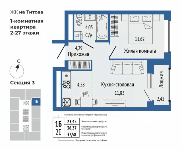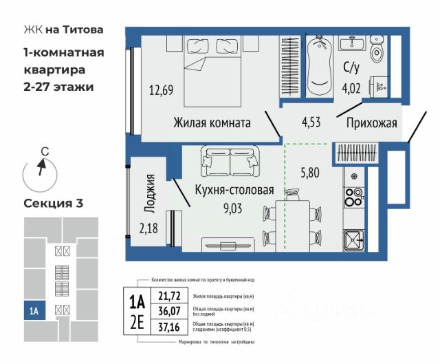 Продается 2-комнатная квартира в ЖК Орбита на Титова.