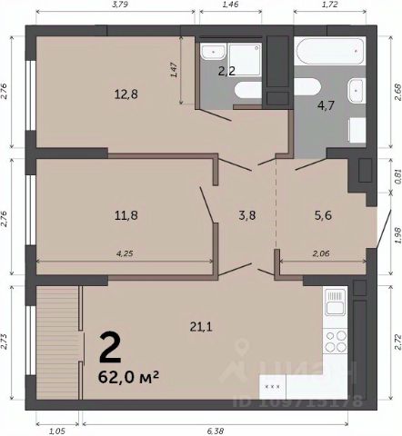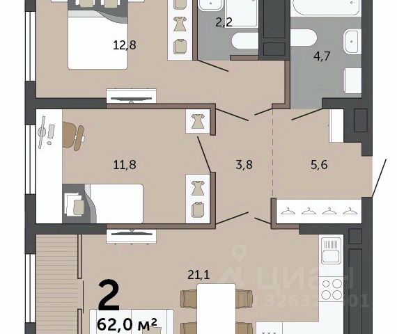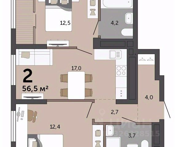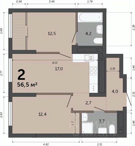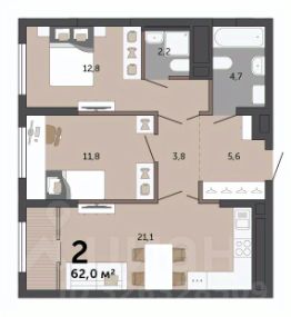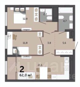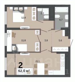 Объект N 194634. Продаётся уютная квартира эргономичной планировки, все комнаты правильной формы- фактически вы приобретаете 2 отдельные комнаты и просторную гостиную с функциональной кухней в доме комфорт класса!
