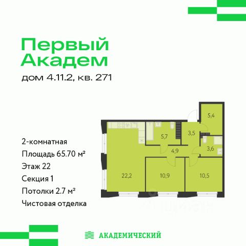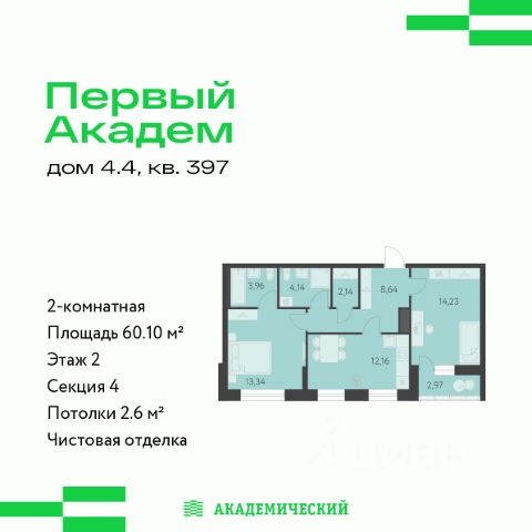 Продается 2-комнатная квартира площадью 50.54 кв.м. от девелопера "Академический" в жилом квартале "Первый Академ". Срок сдачи дома в 2028 году. Выгоды и скидка напрямую от застройщика. Дом расположен на въезде в район, отличается удобной транспортной развязкой. Рядом новая трамвайная линия и остановка общественного транспорта. Эко-тренды во дворах. Холлы и фасады в стиле ар-деко. В продаже имеются квартиры с видом на парк. На территории квартала предусмотрено множество удобств для жильцов, включая видеонаблюдение 24/7, двор без машин, кладовые и подземный паркинг с выходом из лифта, коммерция на первых этажах. В числе особых преимуществ близость к Юго-западному лесопарку и ТРЦ "Академический": магазины, кафе, парк развлечений, кинотеатр, фитнесс-центр с бассейном.