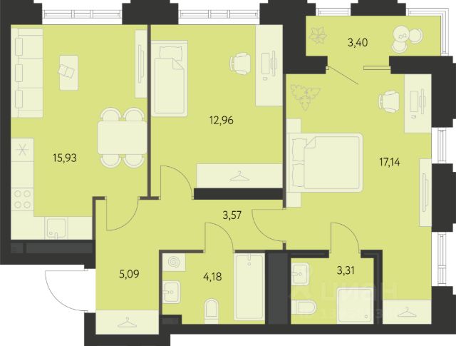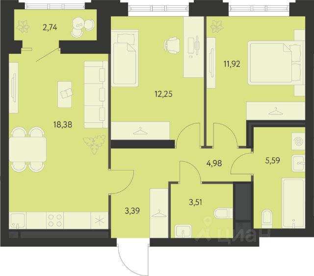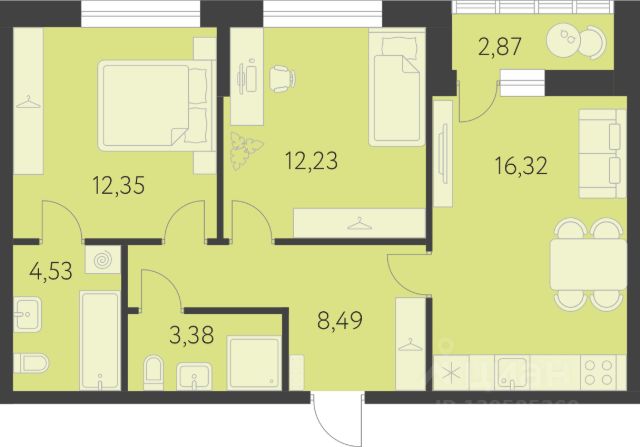 Продается 2-комнатная квартира площадью 62.52 кв.м. от девелопера "Академический" в жилом квартале "Первый Академ". Срок сдачи дома в 2028 году. Выгоды и скидка напрямую от застройщика. Дом расположен на въезде в район, отличается удобной транспортной развязкой. Рядом новая трамвайная линия и остановка общественного транспорта. Эко-тренды во дворах. Холлы и фасады в стиле ар-деко. В продаже имеются квартиры с видом на парк. На территории квартала предусмотрено множество удобств для жильцов, включая видеонаблюдение 24/7, двор без машин, кладовые и подземный паркинг с выходом из лифта, коммерция на первых этажах. В числе особых преимуществ близость к Юго-западному лесопарку и ТРЦ "Академический": магазины, кафе, парк развлечений, кинотеатр, фитнесс-центр с бассейном.