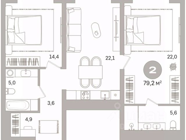 Продается 2-комн. квартира с предчистовой отделкой в ЖК "Гоголя 21" на 6 этаже. Общая площадь: 79.2 кв.м., жилая: 36.4 кв.м., площадь просторной кухни-столовой: 22.1 кв.м. Комнаты изолированные, все окна выходят на одну сторону. В квартире два совмещенных санузла. Высота потолков 2.98 м. Дом монолитный, двухподъездный, переменной этажности, от 21 до 25 этажей. Квартира находится в 1-й секции высотой 25 этажей в корпусе 1. На этаже 5 квартир. В подъезде 2 пассажирских и 1 грузовой лифт. Начало строительства - 3 квартал 2025 года. Окончание строительства - 3 квартал 2028 года. Оформление сделки по договору долевого участия. Квартира с кухней-гостиной и двумя спальнями в проекте Гоголя 21. Особенности планировки: свободная планировка. квартиры в нашей базе: ЗНГ01-Ж1.6.5. Гоголя 21 станет точкой, привлекающей прогрессивных, состоятельных, предприимчивых, модных, но не пафосных людей. Людей дела. Две башни — олицетворение энергии, того самого, изначального пульса Екатеринбурга, возникшего вместе с ударами молотов первых железоделательных заводов. "Гоголя 21" деликатно, но уверенно встраивается в жизнь главной набережной Екатеринбурга. Ведёт уважительный диалог с архитектурными доминантами по соседству. Формирует новый образ городского центра. Две башни — 21 и 25 этажей — объединены четырехэтажной галереей. 169 квартир со свободными планировками, средней площадью в 128 м² и высотой потолков до 3,3 метра напоминают, что на Урале живут люди, привыкшие к простору. Ландшафтные решения в доме на Гоголя, 21 придумали не мы, а Екатеринбург. Главный здесь — гранит. Серый, фактурный, незыблемый, как сам Урал. Он часто встречается на центральных улицах, а в нашем доме используется как материал для мощения и декорирования фонтанов. Все многолетники на клумбах, от гортензии до спиреи, цветут белым: лаконичная палитра привносит в ландшафт уральскую сдержанность и элегантность. На уровне четвёртого этажа устроим главное открытое пространство для отдыха на свежем воздухе — только для жителей "Гоголя 21". В центре террасы — большая зона с летней кухней: гриль, барная стойка, общий стол и уютная лаунж-зона, где можно собраться компанией. В событийной зоне поставим беседку и большой стол с азиатским грилем — место для ужинов и летних вечеринок. Пространство примыкает к залу для праздников, поэтому летом здесь можно устраивать большие соседские встречи. Рядом с игровой комнатой появится пространство для детей — в хорошую погоду их можно объединить. Пока дети лепят песочные куличики или придумывают сюжеты в игровом домике, родители смогут приглядывать за ними, раскачиваясь в подвесных креслах с книгой или ноутбуком. А для спокойного отдыха взрослых и разговоров наедине организуем тихую зону у зенитного фонаря. На террасе — спокойная зелень, бело-розовое цветение, медные акценты в сочетании с серым камнем и террасной доской. По периметру — стеклянные ограждения и живая изгородь, которые делают пространство безопасным и по-настоящему приватным. #2