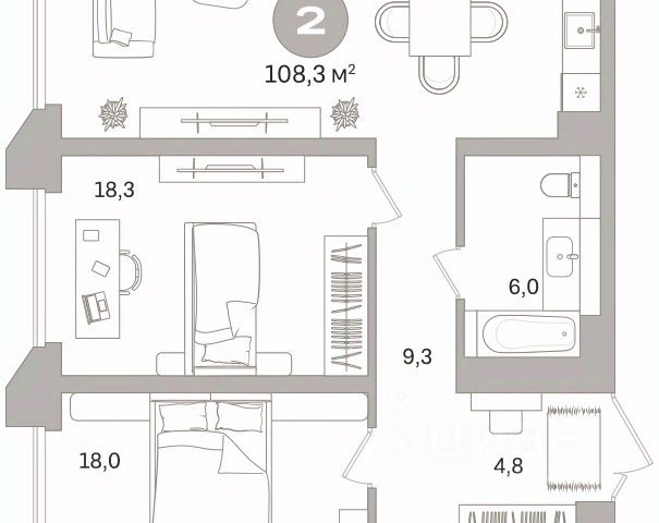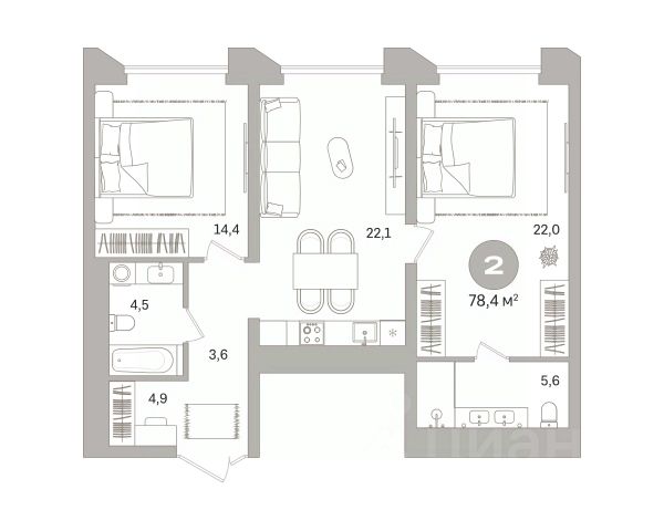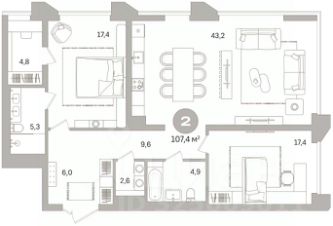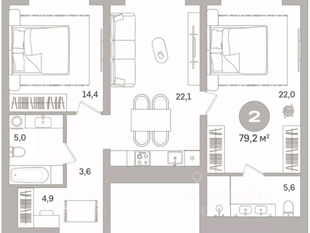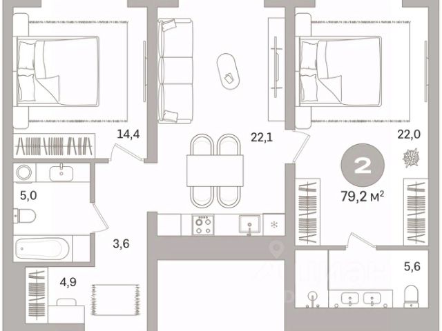 Двухкомнатная квартира с предчистовой отделкой в ЖК "Гоголя 21" на 5 этаже. Общая площадь: 79.2 кв.м., жилая: 36.4 кв.м., площадь просторной кухни-столовой: 22.1 кв.м. Комнаты изолированные, все окна выходят на одну сторону. В квартире два совмещенных санузла. Высота потолков 2.98 м. Дом монолитный, двухподъездный, переменной этажности, от 21 до 25 этажей. Квартира находится в 1-й секции высотой 25 этажей в корпусе 1. На этаже 5 квартир. В подъезде 2 пассажирских и 1 грузовой лифт. Начало строительства - 3 квартал 2025 года. Окончание строительства - 3 квартал 2028 года. Оформление сделки по договору долевого участия. Квартира с кухней-гостиной и двумя спальнями в проекте Гоголя 21. Особенности планировки: свободная планировка. квартиры в нашей базе: ЗНГ01-Ж1.5.5. Гоголя 21 станет точкой, привлекающей прогрессивных, состоятельных, предприимчивых, модных, но не пафосных людей. Людей дела. Две башни — олицетворение энергии, того самого, изначального пульса Екатеринбурга, возникшего вместе с ударами молотов первых железоделательных заводов. "Гоголя 21" деликатно, но уверенно встраивается в жизнь главной набережной Екатеринбурга. Ведёт уважительный диалог с архитектурными доминантами по соседству. Формирует новый образ городского центра. Две башни — 21 и 25 этажей — объединены четырехэтажной галереей. 169 квартир со свободными планировками, средней площадью в 128 м² и высотой потолков до 3,3 метра напоминают, что на Урале живут люди, привыкшие к простору. Ландшафтные решения в доме на Гоголя, 21 придумали не мы, а Екатеринбург. Главный здесь — гранит. Серый, фактурный, незыблемый, как сам Урал. Он часто встречается на центральных улицах, а в нашем доме используется как материал для мощения и декорирования фонтанов. Все многолетники на клумбах, от гортензии до спиреи, цветут белым: лаконичная палитра привносит в ландшафт уральскую сдержанность и элегантность. На уровне четвёртого этажа устроим главное открытое пространство для отдыха на свежем воздухе — только для жителей "Гоголя 21". В центре террасы — большая зона с летней кухней: гриль, барная стойка, общий стол и уютная лаунж-зона, где можно собраться компанией. В событийной зоне поставим беседку и большой стол с азиатским грилем — место для ужинов и летних вечеринок. Пространство примыкает к залу для праздников, поэтому летом здесь можно устраивать большие соседские встречи. Рядом с игровой комнатой появится пространство для детей — в хорошую погоду их можно объединить. Пока дети лепят песочные куличики или придумывают сюжеты в игровом домике, родители смогут приглядывать за ними, раскачиваясь в подвесных креслах с книгой или ноутбуком. А для спокойного отдыха взрослых и разговоров наедине организуем тихую зону у зенитного фонаря. На террасе — спокойная зелень, бело-розовое цветение, медные акценты в сочетании с серым камнем и террасной доской. По периметру — стеклянные ограждения и живая изгородь, которые делают пространство безопасным и по-настоящему приватным. #2m9Fe
