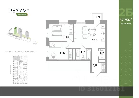 "РАЗУМ на Малышева" — новый проект от федерального девелопера с 12-летним опытом. Квартал расположен в самом сердце Екатеринбурга в Кировском районе. В шаговой доступности: 8 детских садов; 7 школ; прогулочные зоны и парки; магазины; учреждения профессионального образования. "РАЗУМ на Малышева" — это четыре 31-этажных башен на улице Малышева. Дополнительная приватность, безопасность и тишина создаётся за счёт возвышения домов на стилобате. Балконы на фасадах открывают виды на город и во двор, а угловые террасы открывают ещё больше простора и потрясающих видов. Жители квартала "РАЗУМ на Малышева" наслаждаются зелёными зонами круглый год. 60% территории занимает озеленение с деревьями, кустарниками и многолетниками. Здесь прогулки, отдых, работа и встречи с друзьями проходят в уютных зонах с перголами, шезлонгами и гамаками. "РАЗУМ на Малышева" — это: развитая инфраструктура; эргономичные и яркие архитектурные решения; дополнительный уровень спокойствия за счет возвышения на стилобате; во дворе высажены деревья и кустарники с учетом 4 сезонов; многоуровневое освещение; благоустройство; высокий уровень безопасности; стильные гранд-лобби и ресепшн; особые панорамные виды; собственная управляющая компания; собственный детский сад на 150 мест; четырёхэтажный паркинг; соседский центр место развития добрососедства; коммерческие помещения. Эргономичность и удобство в каждом квадратном метре — основа планировочных решений в квартале "РАЗУМ на Малышева". Для каждого сценария жизни найдется планировка: представлены десятки вариантов от 29,92 м² до 84,88 м². Квартиры с террасами размещены на верхних этажах домов. Терраса — это дополнительное пространство для слияния с природой.