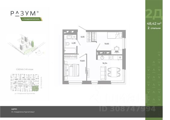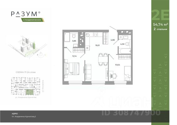 "РАЗУМ в Академическом" — это жилой комплекс из 7 домов переменной этажности от федерального девелопера "РАЗУМ" с 12-летним опытом создания жилых проектов. Дома от 12 до 24 этажей расположены в границах ул. Амундсена. В пешей доступности: - 6 школ; - 10 детских садов; - магазины; - поликлиники; - фитнес-залы. Рядом удобный выезд на ЕКАД. Главная особенность проекта — угловое остекление, которое составляет 22% всей площади. Окна в квартирах установлены в 60 см от пола. Увеличенная площадь остекления помогает снизить затраты на энергоресурсы и создаёт уют в квартире. Сердце жилого комплекса — приватный двор-парк с игровыми комплексами, тренажерами, площадками. "городские грядки" — новое решение благоустройства, где выращиваются ароматные травы или цветы. За пределами комплекса есть прогулочная зона с эко-тропой с вдохновляющими надписями. Прогулки по эко-тропе — это променады наедине с природой. "РАЗУМ в Академическом" — это: - территория без машин; - безбарьерная среда; - единый экостиль в оформлении дворового пространства; - 11 тематических зоны в двор-парке; - многоуровневое освещение и подсветка фасадов; - видеонаблюдение; - гостевой паркинг; - эстетичные подъездные холлы со сквозными подъездами и комфортной зоной ожидания; - Разделенные колясочные и велосипедные зоны; - Велосипедные на 1 этаже; - Кладовые помещения на каждом этаже и на -1 этаже. В проекте 25 планировочных решений: от уютных студий от 21,51 м² до квартир с тремя спальнями и кухней-гостиной до 66,58 м² с функциональным разделением на гостевую и приватные зоны.