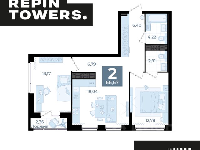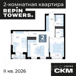 2-комнатные квартиры в жилом комплексе REPIN TOWERSЖК «REPIN TOWERS (Репин Тауэрс)»