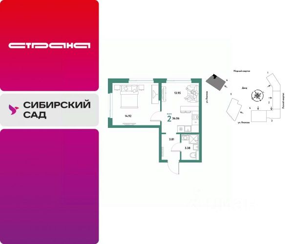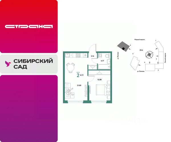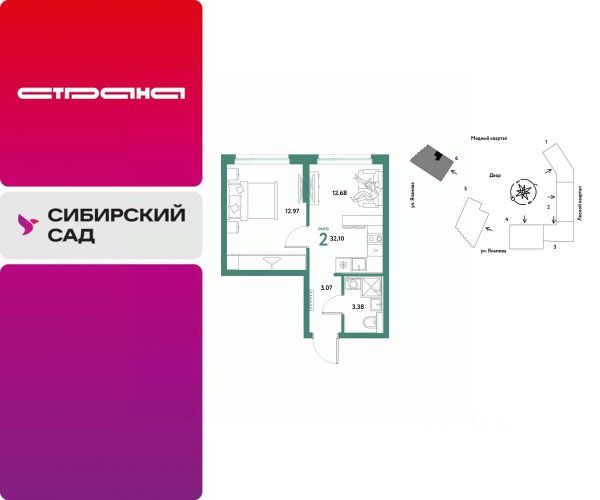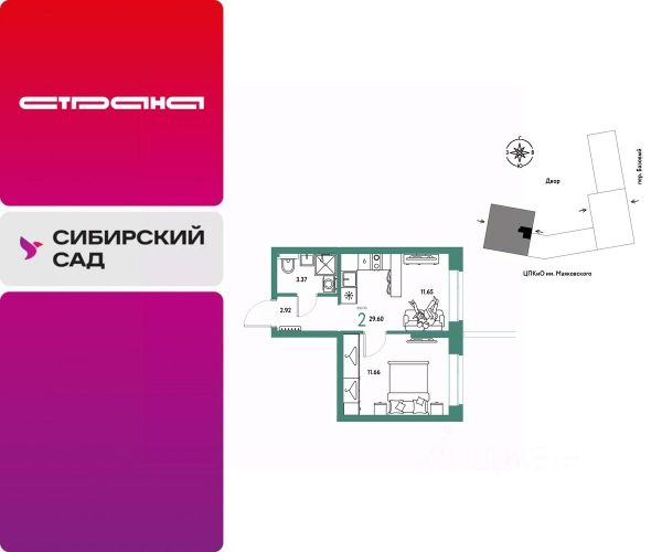 Новая квартира в ЖК "Сибирский сад" напрямую от федерального застройщика "Страна Девелопмент". Продается 2комнатная квартира на 2 этаже от застройщика Страна Девелопмент. Площадь квартиры 29,6 кв. м. Жилой комплекс "Сибирский сад" — первый проект от федерального застройщика "Страна Девелопмент" в Екатеринбурге. Квартал объединил в себе близость к природе и современному ритму жизни мегаполиса. Жителей ждёт живописный город-сад с приватными дворовыми территориями, большой пешеходный бульвар и собственный летний кинотеатр. Преимущества • Главная особенность жилого комплекса — огромный двор-сад с приватной территорией и собственным бульваром. Озеленение продумано с учётом сезонности растений. У каждого дома расположатся детские площадки, воркаут-зоны, арт-объекты и места для тихого отдыха. А для дополнительного комфорта входы во двор оборудованы системой FaceID. • В ЖК предусмотрен подземный паркинг на 333 машиноместа, в который можно попасть из любой секции, не выходя из дома. Сохранность автомобилей гарантирует охрана и круглосуточная система видеонаблюдения. • Сквозные парадные, спроектированные по принципу безбарьерной среды, с прозрачными входными группами обеспечивают естественное освещение и дополнительную безопасность. Все лобби выполнены по-индивидуальному дизайн-проекту. В каждом предусмотрены колясочные и велосипедные. Отделка Квартиры сдаются с предчистовой отделкой: произведена разводка электричества и отопления, выполнена стяжка пола, стены выровнены "под маяк", установлены радиаторы. Дизайнерская отделка При покупке квартиры в ЖК "Сердце Сибири" можно включить стоимость ремонта в ипотеку. 4 стиля отделки ванной и 5 стилей отделки комнат на выбор. Кухня от застройщика Одна из удобных опций от Страны — приобретение кухни в ипотеку при покупке опции "Ремонт". Доступно 4 стиля на выбор: дерево, керамика, мрамор, бетон. Умный дом Система "Умный дом" создаст новый уровень комфорта. Управление светом с помощью голоса, получение последней информации о ситуации в квартире во время отпуска или рабочего дня — и другие преимущества включены в пакет. Способы покупки Сотрудники "Страна Девелопмент" будут сопровождать вас на каждом этапе сделки, помогут получить одобрение по ипотеке или снизить ежемесячный платеж. - ипотека - рассрочка - с использованием материнского капитала -100% оплата наличными