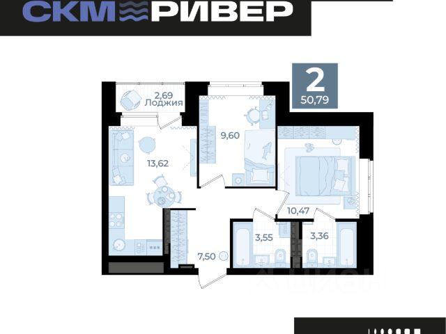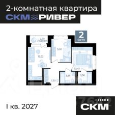 Продаётся 2-комнатная квартира в строящемся доме (1 очередь), срок сдачи: I-кв. 2027, общей площадью 53.15 кв.м., на 16 этаже. Новый жилой комплекс "СКМ Ривер" от застройщика "СКМ Двелопмент" расположен по адресу: г. Екатеринбург, улица Щербакова.