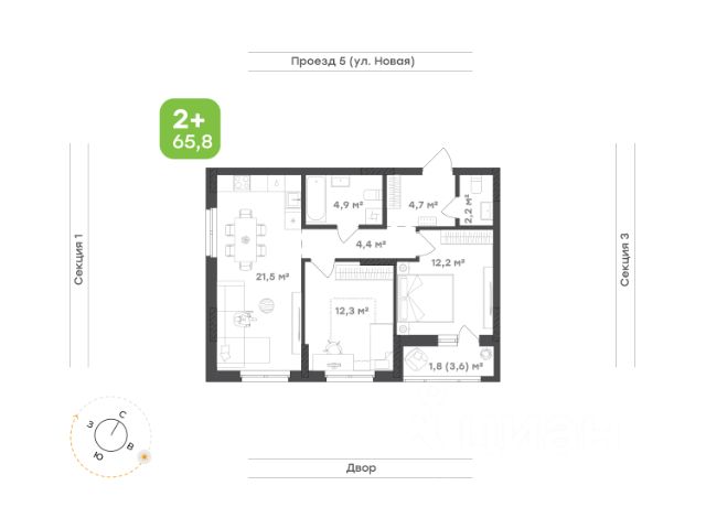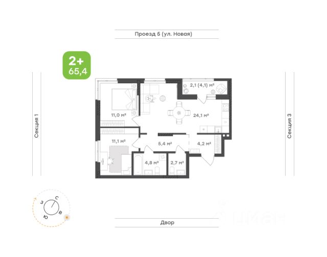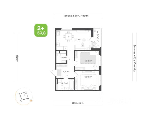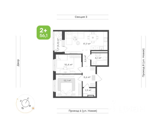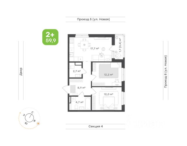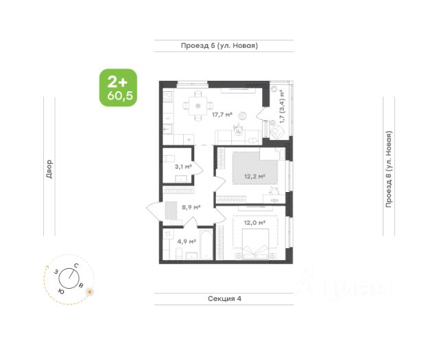 Оазис современного уюта, где каждый метр наполнен заботой о вашем комфорте и стиле жизни Кухня-гостиная 21,1 м²— пространство, где свет и свобода создают атмосферу для кулинарных экспериментов, душевных встреч и уютных вечеров, а выход на панорамную лоджию 3,7 м² открывает заряжающий энергией вид на городской пейзаж Мастер-спальня 14,7 м² — личный уголок спокойствия с собственным санузлом 3,5 м² и продуманным местом под систему хранения, позволяющим организовать пространство максимально рационально Отдельный санузел 4,4 м² практичное решение, обеспечивающее удобство и приватность для гостей и членов семьи Просторная прихожая 6,0 м² продумана для хранения верхней одежды и обуви, обеспечивая лёгкость и порядок Детская 11,4 м² уютное место, где ребёнок сможет расти, играть и развивать свои таланты, а продуманное место под шкаф-купе помогает поддерживать порядок в его мире Коридор 7,0 м² связующее звено, обеспечивающее плавное и удобное передвижение по квартире, объединяя все зоны в гармоничное целое