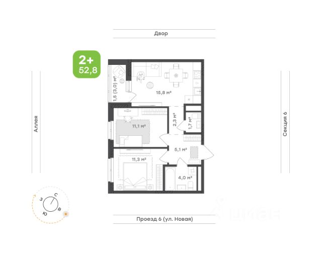 Квартира для тех, кто хочет окунуться в мир современного уюта и функциональности Концепция "тихий дом": все квартиры в доме с чистовой отделкой, никаких шумных ремонтных работ с утра до вечера Кухня-гостиная 22,8 м² объединяет в себе стиль и практичность, а выход на лоджию 3,4 м² с видом на двор дарит ощущение спокойствия и свежести Мастер-спальня 14,6 м² с собственным санузлом 2,9 м² и местом под шкаф-купе — уголок комфорта и уединения Детская 11,1 м² — светлая и радостная, с продуманным местом под шкаф, где каждая деталь способствует комфортному росту и развитию Просторная прихожая 3,2 м² со шкафом-купе позволяет хранить вещи аккуратно и организованно Коридор 3,2 м² создаёт плавное и логичное соединение между всеми зонами квартиры Дополнительный санузел 4,0 м² с ванной и местом под стиральную машину послужит зоной для расслабляющих процедур