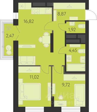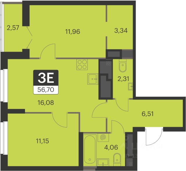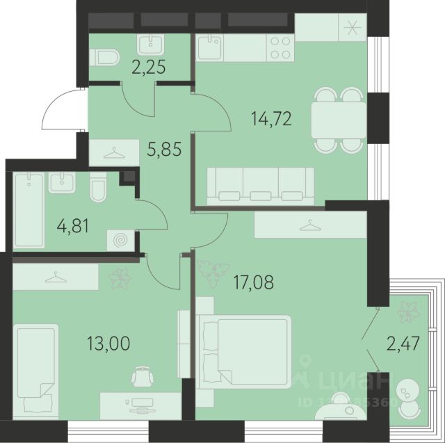 Продается 2-комнатная квартира площадью 56.86 кв.м. от девелопера "Академический" в жилом квартале "Спутник 1". Срок сдачи дома в 2027 году. Квартал 17 - Комплексная застройка, в сентябре 2024 уже была открыта новая школа . Квартиры с двумя видами отделки: под ключ и white-box. От студий до многокомнатных, с классическими и евро-планировками. С лоджиями и французским остеклением - окнами в пол. На территории квартала предусмотрено множество удобств для жильцов, включая дизайнерские холлы в космическом стиле, двор без машин, разнообразие спортивных и игровых зон во дворах, наземные паркинги, видеонаблюдение 24/7. Один из уникальных проектов в "Спутнике-1" — памп-трек. Его открытие запланировано в 2025 году. Новая спортивная площадка предназначена для катания на самокатах, беговелах, велосипедах и роликах. В шаговой доступности расположена новая взрослая поликлиника и Преображенский парк.