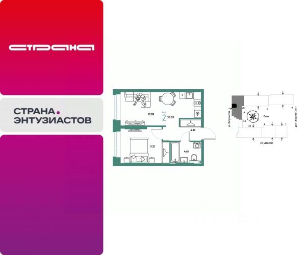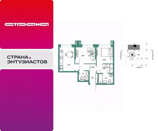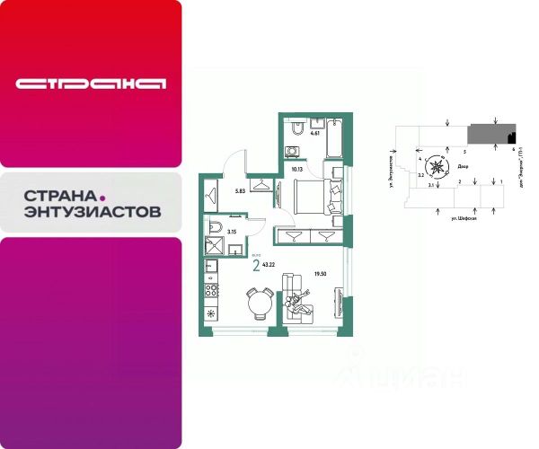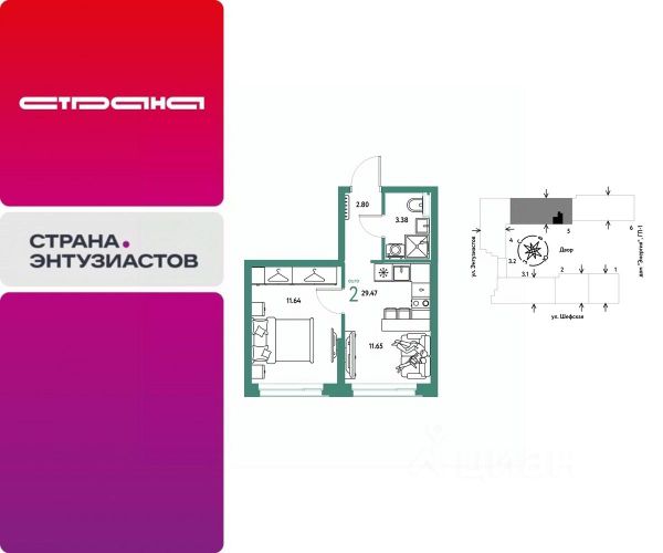 Новая квартира в ЖК "Страна.Энтузиастов" напрямую от федерального застройщика "Страна Девелопмент". Продается 2комнатная квартира на 6 этаже от застройщика Страна Девелопмент. Площадь квартиры 28,87 кв. м. ЖК "Страна.Энтузиастов" Жилой комплекс "Страна.Энтузиастов" — это уютный квартал на севере Екатеринбурга, в центре Эльмаша. Здесь органично соединяются природа и умные технологии. Главной точкой притяжения станет "зелёная" городская гостиная, которая объединит жителей района. А значимой социальной особенностью проекта выступит муниципальный детсад на 100 мест. Преимущества • Городская гостиная для отдыха жителей и гостей — мы вдохновились энергией народной стройки и огромным желанием сделать свой дом лучше и уютнее. Ведь в середине ХХ века на Эльмаше кипела заводская жизнь, лился металл, инженеры и рабочие. • У каждого дома свой приватный двор окружен "зеленью", которая будет цвести весь год. Двор мы разделили на несколько зон: для детей младшего и среднего возраста, релакс пространство с гамаками и подвесными креслами, спортивная зона с воркаут и настольным теннисом. • На первых этажах находятся торговые и офисные помещения. В них располагаются полезные сервисы для жителей: рестораны, магазины, пекарни, кофейни, аптеки, салоны красоты и пункты выдачи заказов. Для каждого помещения спроектирован отдельный вход, витражное остекление и место под вывеску. Отделка Квартиры сдаются с предчистовой отделкой: произведена разводка электричества и отопления, выполнена стяжка пола, стены выровнены "под маяк", установлены розетки, выключатели и радиаторы. Дизайнерская отделка При покупке квартиры в ЖК "Страна.Энтузиастов" можно включить стоимость ремонта в ипотеку. Пять вариантов на выбор: хлопковая нить, серый шторм, белый камень, шалфей, голубой вереск. Способы покупки Сотрудники "Страна Девелопмент" будут сопровождать вас на каждом этапе сделки, помогут получить одобрение по ипотеке или снизить ежемесячный платеж. - ипотека - рассрочка - с использованием материнского капитала -100% оплата наличными