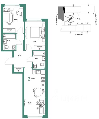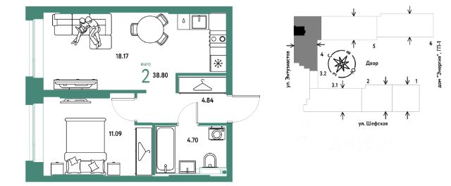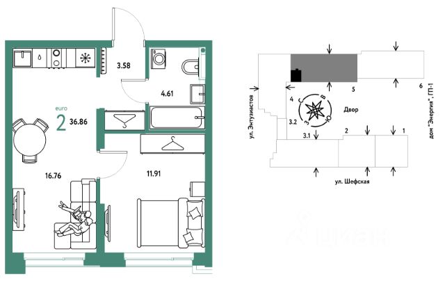 Продам евро-2 комнатную квартиру, СДАЧА в 2025г, в ЖК Страна Энтузиастов, цена НИЖЕ чем у застройщика на 1 300 000 рублей!