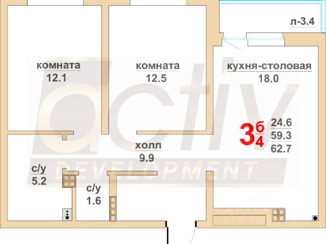 ЖК Свой Дом, 1 очередь, 3 подъезд, Квартира 117