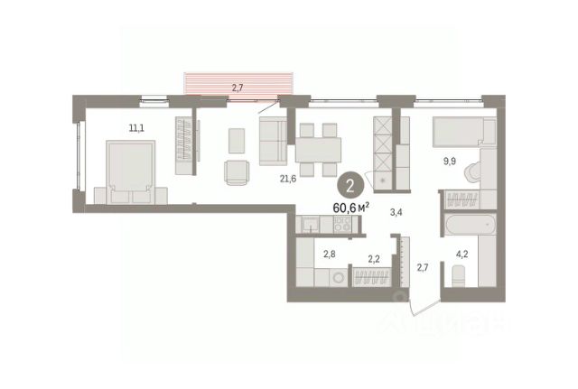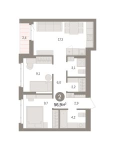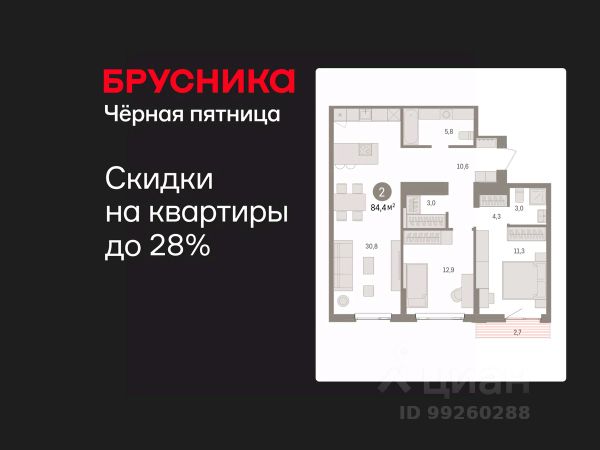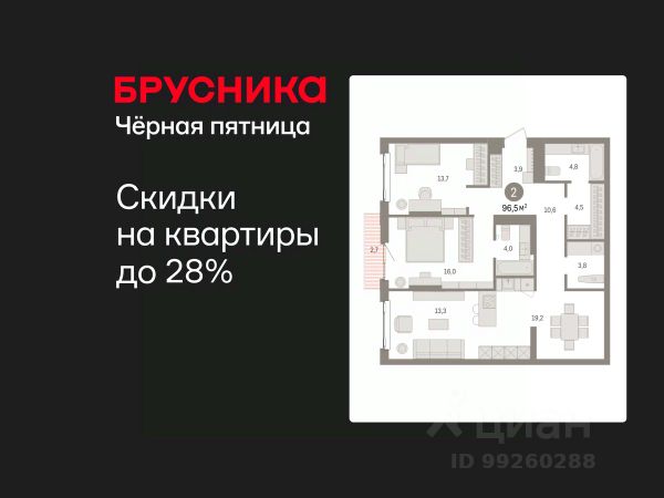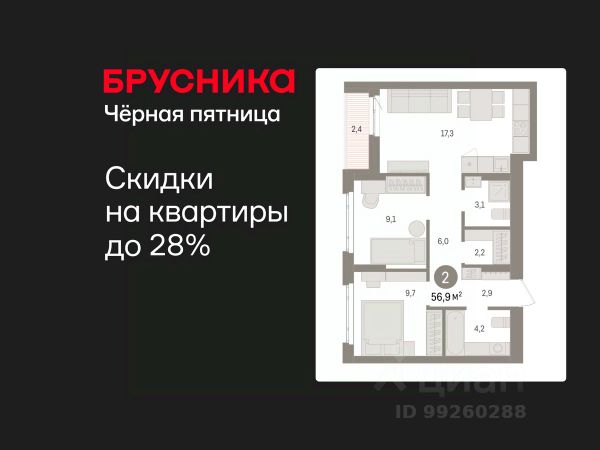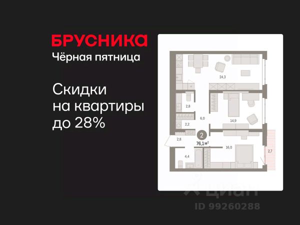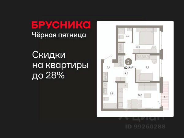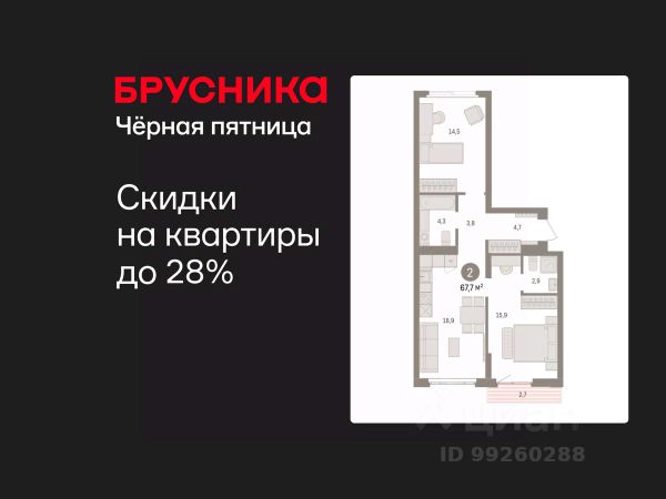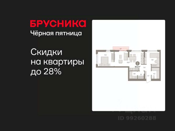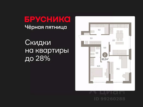 Спешите забронировать, пока действует скидка! Срок акции ограничен! Стоимость квартиры указана со скидкой, ваша экономия составит 360,000 RUB. По всем вопросам звоните в офис продаж, мы вам все подробно расскажем! Просторная 2-комн. квартира с предчистовой отделкой в ЖК "Квартал Траектория" на 4 этаже. Общая площадь: 61.9 кв.м., жилая: 20 кв.м., площадь просторной кухни-столовой: 21 кв.м. Угловая квартира, очень светлая, естественная вентиляция при открытии окон. В квартире одна лоджия, один совмещенный и один раздельный санузел. Высота потолков 2.82 м. Дом монолитный, многоподъездный, переменной этажности, от 7 до 25 этажей. Квартира находится в 3-й секции высотой 16 этажей в корпусе 1-1. На этаже 7 квартир. В подъезде 1 пассажирский и 1 грузовой лифт. Начало строительства - 4 квартал 2025 года. Окончание строительства - 4 квартал 2027 года. Оформление сделки по договору долевого участия. Квартира с кухней-гостиной и двумя спальнями в квартале "Траектория". Особенности планировки: второй санузел, гардеробная, стартовая цена, лоджия, разнесённые спальни, предчистовая отделка. квартиры в нашей базе: МНВ01-Ж3.4.4. Квартал "Траектория" строится в границах улиц Билимбаевской, Расточной, Монтажников и Маневровой Раньше здесь находился оборонный завод 5-ЦАРЗ, основанный в 1945 году. После войны он ремонтировал военную и грузовую технику — от "Виллисов" и "Студебекеров" до советских ЗИС-5 и ГАЗ-67. Сортировка — район с развитой инфраструктурой, обжитыми жилыми кварталами разных эпох и большим количеством парков. До центра Екатеринбурга — 20 минут на машине. Туда же можно отправиться на автобусе: ближайшая остановка общественного транспорта — в 4 минутах от "Траектории". Рядом с "Траекторией" расположены магазины, торговый центр, детские сады, школы, поликлиники и полезные сервисы, а также другой проект Брусники — квартал "Депо". Если хочется развлечений, можно отправиться в ТРЦ "Карнавал" и парк с аттракционами "Таганская слобода" — дорога туда займёт не более 10 минут на машине. Квартал "Траектория" — первый этап комплексного развития территории, которую раньше занимали производственные здания. На месте бывших цехов Брусника создаст дружелюбную среду и комфортное пешеходное пространство для всего района. Для озеленения квартала мы подобрали больше 60 видов растений: ольху, липу, клён, иву, грушу, вишню, сирень, барбарис, гортензию, смородину, ирис, декоративные травы. Они цветут в разное время года и постоянно меняют настроение двора. В "Траектории" мы предусмотрели несколько общественных пространств, открытых для всех горожан: встречающий сквер, лесопарк у храма и событийный сквер между домами. Когда захочется тишины и уединения, можно устроить прогулку во внутренних дворах: в них нет машин и посторонних, зато много зелени, света и мест для отдыха. Каждый двор в квартале "Траектория" — продолжение квартиры, только под открытым небом. Здесь можно прогуляться босиком по траве, устроить утреннюю йогу, почитать книгу в гамаке или